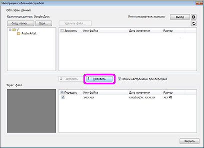 1. В меню Обмен через обл. хран. выберите Загрузить плакат/материал.