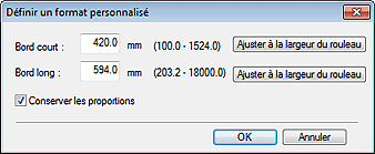 - Pour définir une longueur identique à la largeur du rouleau pour le bord court ou le bord long de l'affiche, cliquez sur Ajuster à la largeur du rouleau.