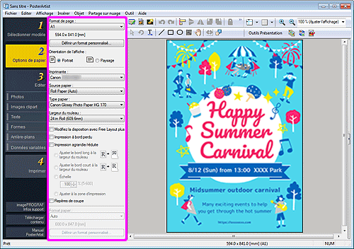 - Lorsque la case est sélectionnée, la format papier ne peut pas être spécifié dans PosterArtist.