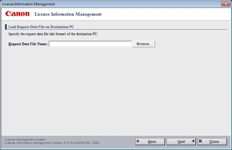 Prima di trasferire la licenza, installare PosterArtist sul computer di destinazione. Quindi, creare il file di dati della richiesta nella schermata Autenticazione della licenza (License Authentication) di PosterArtist. Per istruzioni sulla creazione del file di dati della richiesta, vedere Creazione dati di richiesta.