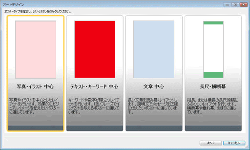- 作成したいポスターのタイプを、4パターンの中から選びます。