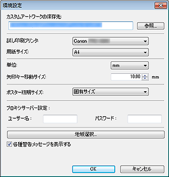 - チェックマークを外すと、PosterArtist使用時に表示される警告メッセージが表示されなくなります。