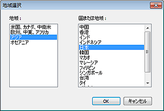 [地域選択]ダイアログボックスが表示され、[地域]や[国または地域]を選びます。