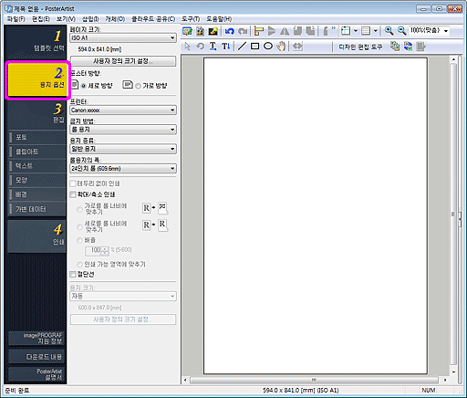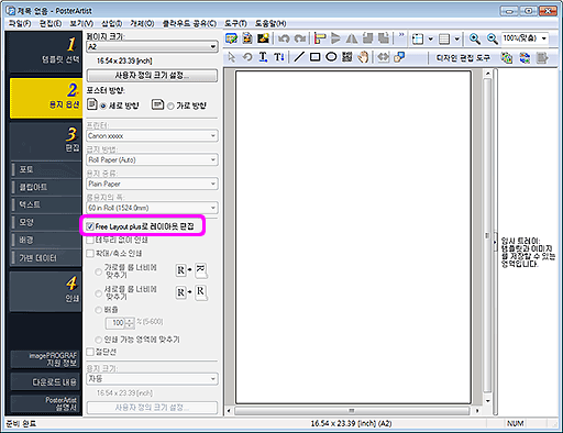 - 이 기능을 사용하는 경우, PosterArtist에서 출력 용지를 구성할 수 없습니다. Free Layout plus에서 용지 크기를 지정하십시오.