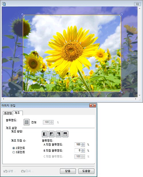 이미지 편집(Edit Image) 대화 상자와 미리 보기 패널을 표시하려면 이미지 편집(Edit Image)에서