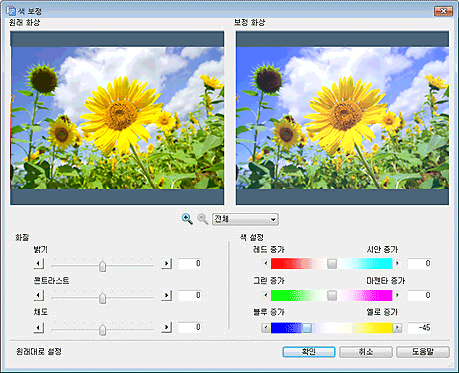 (이미지 수정)을 클릭합니다. 색 보정(Color Adjustment) 대화 상자를 표시하려면, 색 보정(Color Adjustment)을 클릭합니다.