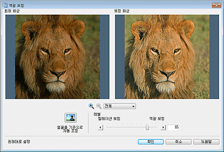 (이미지 수정)을 클릭합니다. 역광 보정(Backlight Correction) 대화 상자를 표시하려면, 역광 보정(Backlight Correction)을 클릭합니다.