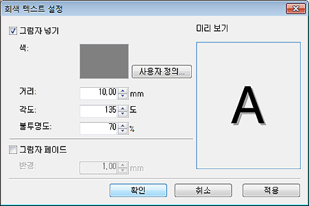 회색 텍스트 설정 대화 상자