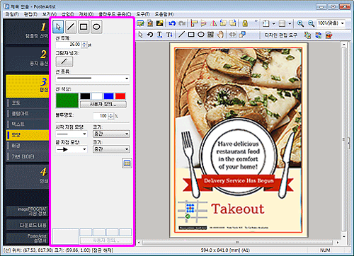 직선, 원, 사각형, 화살표 및 기타 모양을 포스터에 추가합니다.
