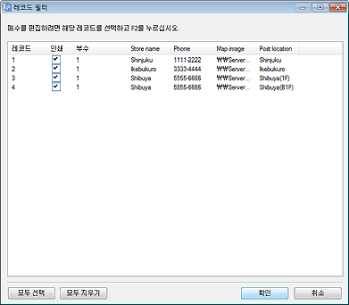 레코드 필터(Filter Records) 대화 상자를 표시하여 인쇄 매수를 설정합니다.