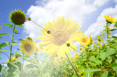 Nota- Para ajustar o espaçamento, mova os pontos intermediários (C1 e C2) na linha que conecta o ponto inicial (A) e o ponto final (B).