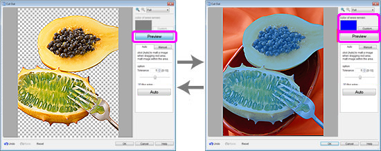 - Para desfocar as bordas das partes cortadas, marque a caixa de seleção Red desfoque (Blur edge).