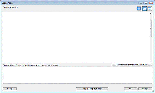 - Adiciona os designs selecionados à bandeja temporária. Ao colocar designs na bandeja temporária, você pode usá-los como substituições mesmo depois de finalizar a Assistência de design. É possível adicionar vários designs à bandeja temporária.