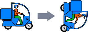 Для переворота объекта нажмите одну из кнопок на панели инструментов, чтобы выбрать направление переворота. Также направление переворота можно выбрать с помощью пункта Повернуть или перевернуть (Rotate or Flip), щелкнув объект правой кнопкой мыши.