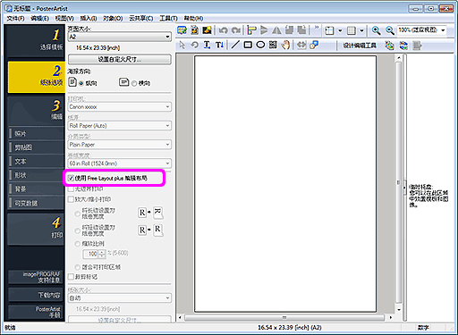- 使用此功能时,无法在PosterArtist中配置输出介质。 在Free Layout plus中指定介质尺寸。
