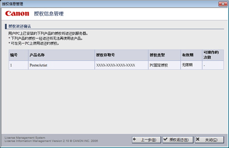 - 要传送或返还授权,需要连接互联网,并安装Internet Explorer 6或更高版本。 有关详细信息,请参见PosterArtist附带的授权认证指南。