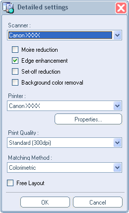 Displays the Detailed settings dialog box for changing the scanner and printer to use and for making advanced settings for scanning.