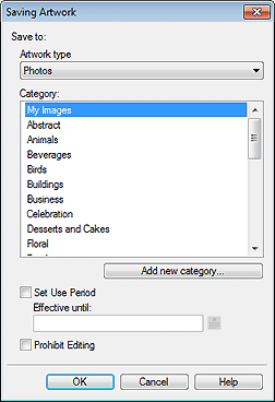 Importante- Una vez establecido, el periodo de utilización de las ilustraciones añadidas no se puede cambiar ni cancelar. Para modificar o cancelar el periodo de utilización, vuelva a añadir la plantilla.