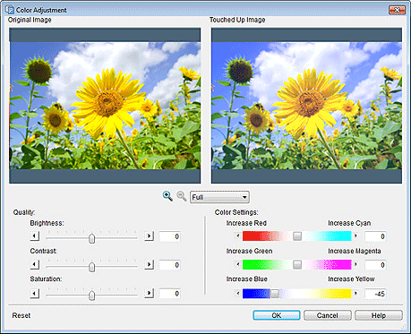 (Retocar imagen) en Editar imagen (Edit Image). Para que se muestre el cuadro de diálogo Ajuste de color (Color Adjustment), haga clic en Ajuste de color (Color Adjustment).