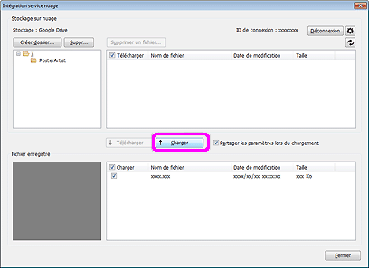 Dans le menu Partage sur nuage, cliquez sur Charger l'affiche actuellement ouverte....