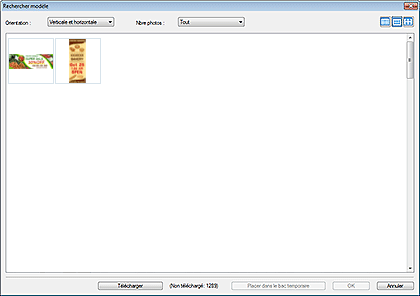 - Affiche les miniatures des modèles qui correspondent aux critères de recherche.