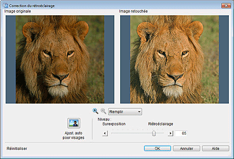 (Retoucher l'image) dans Modifier l'image. Pour afficher la boîte de dialogue Correction du rétroéclairage, cliquez sur Correction du rétroéclairage.