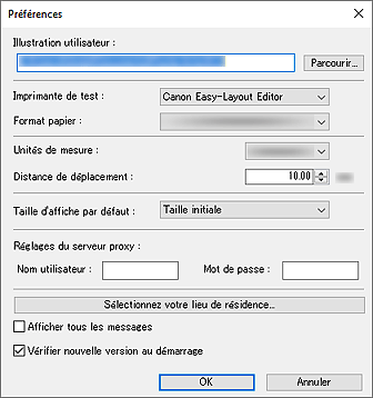 Spécifiez l'emplacement où enregistrer l'illustration, l'imprimante à utiliser pour l'impression test, etc.