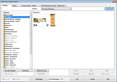 Pour afficher la boîte de dialogue Gestionnaire d'illustrations, cliquez sur