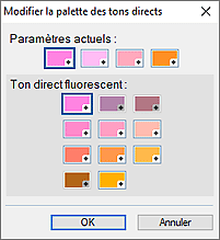 Cliquez pour afficher la boîte de dialogue Modifier la palette des tons directs permettant de modifier les couleurs qui s'affichent dans la palette.