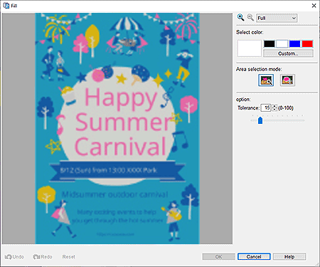 (Riempi) nella finestra di dialogo Ritocca immagine (Retouch Image) che viene visualizzata. - Fare clic con il pulsante destro del mouse sull'immagine che si desidera modificare (ad esempio una foto) nel poster, quindi fare clic su Ritocca immagine... (Retouch Image...) > Riempi (Fill).