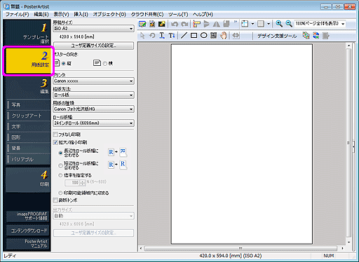 - この機能を使用すると、PosterArtistで出力用紙の設定ができません。Free Layout plusで出力サイズを設定してください。