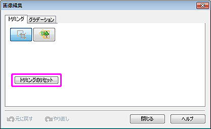 トリミングを解除する場合は、[画像編集]ダイアログボックスで、[トリミングのリセット]をクリックしてください。