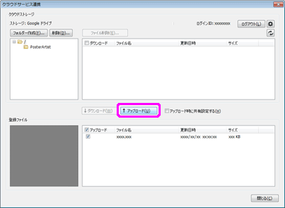 参考- クラウドストレージにアップロードしたポスターをダウンロードする方法については、「ポスター/素材をクラウドからダウンロードする」を参照してください。