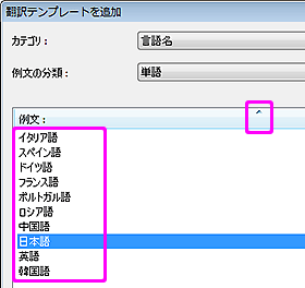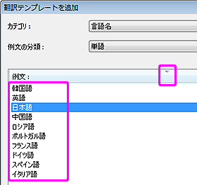 (翻訳テンプレートを追加)をクリックする[翻訳テンプレートを追加]ダイアログボックスが表示されます。