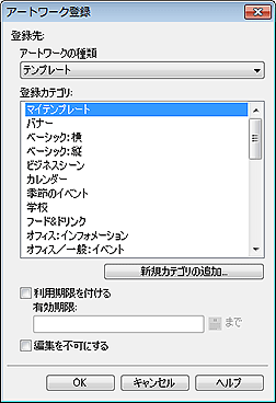 [アートワーク登録]ダイアログボックス(テンプレート)