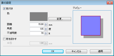 (影)をクリックすると、[影の設定]ダイアログボックスが表示されます。