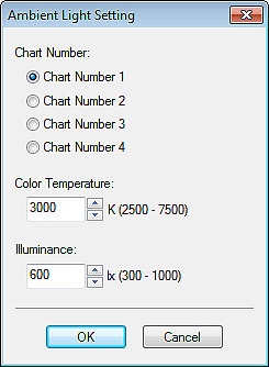 Nota- Você também pode salvar as configurações de luz ambiente padrão com um novo nome. Nesse caso, em Número do gráfico (Chart Number), selecione de Número do gráfico 1 (Chart Number 1) a Número do gráfico 4 (Chart Number 4).