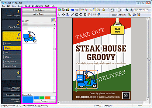 Adicione um clipart ao pôster ou substitua o clipart adicionado.