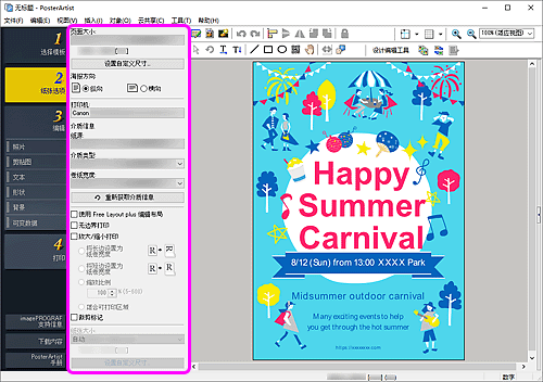 注释- 只显示计算机上安装的支持PosterArtist的打印机。