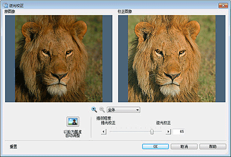 (润饰图像)。 要显示逆光校正对话框,请单击逆光校正。