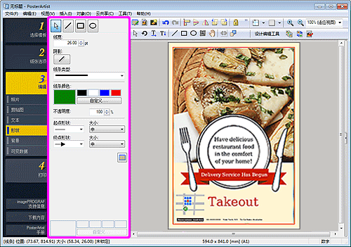 在海报上添加直线、圆、矩形、箭头和其他形状。