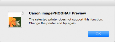 Se si seleziona una stampante che non supporta Preview, viene visualizzato il seguente messaggio. In questo caso, selezionare un'altra stampante.