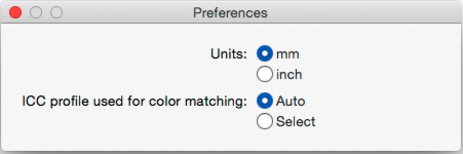 Essa caixa de diálogo é exibida quando você seleciona Preferências (Preferences) no menu Canon imagePROGRAF Preview. É possível definir as preferências de Preview.