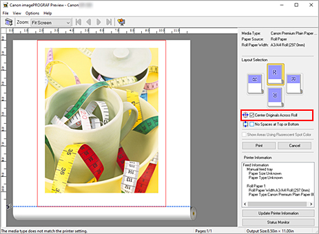 Selecione Centralizar originais ao longo do rolo (Center Originals Across Roll).