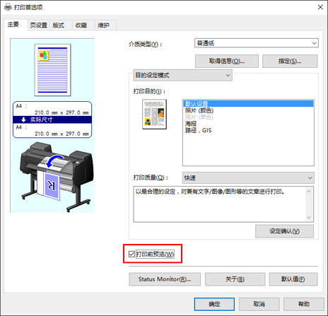 会在此画面的左下方显示您所使用的打印机的图片。