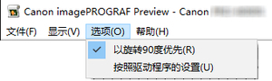 从选项菜单中,能选择以旋转90度优先或者按照驱动程序的设置。