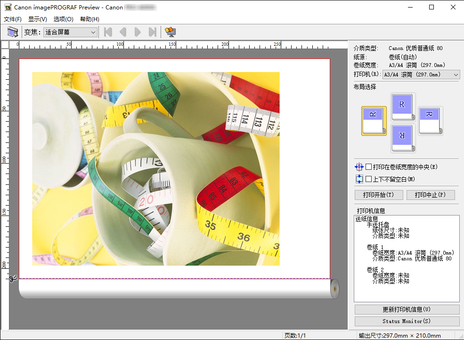 将纵长的页面旋转90度进行打印。旋转的结果,只有在符合卷纸宽度时才自动地旋转页面。