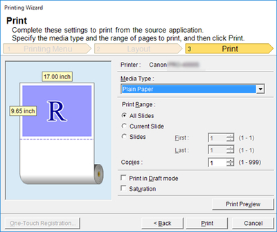 Imprimir usando las configuraciones registradas (Print Using Registered Settings) (PowerPoint)