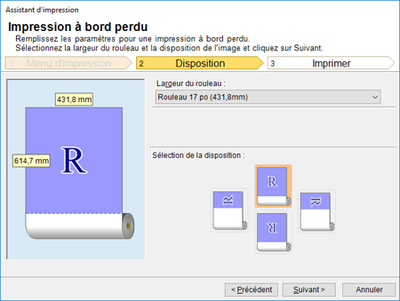Sélectionnez la Largeur du rouleau paramétrée pour l'imprimante.