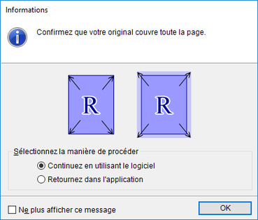 Si les données occupent toute la page, sélectionnez Continuez en utilisant le logiciel dans Sélectionnez la manière de procéder, puis cliquez sur le bouton OK.